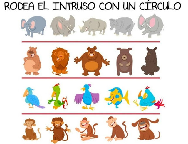 Encuentra el dibujo que no pertenece a cada grupo.