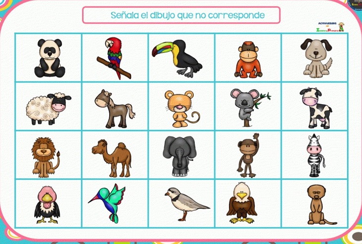 Estos son los objetos que debe memorizar (en este caso, fotos de animales):